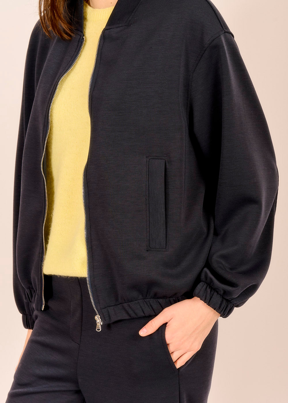 Der dunkelblaue Bomberino mit Gummizug an Saum und Ärmeln wirkt sportiv und zugleich stilvoll und souverän – genau diese Mischung macht den italienischen Stil so unverwechselbar. Besonders mühelos lässt er sich mit der passenden Pantalone kombinieren.