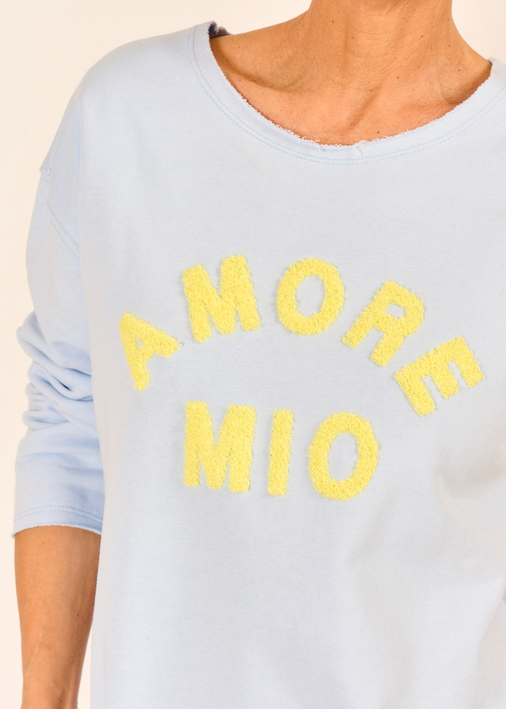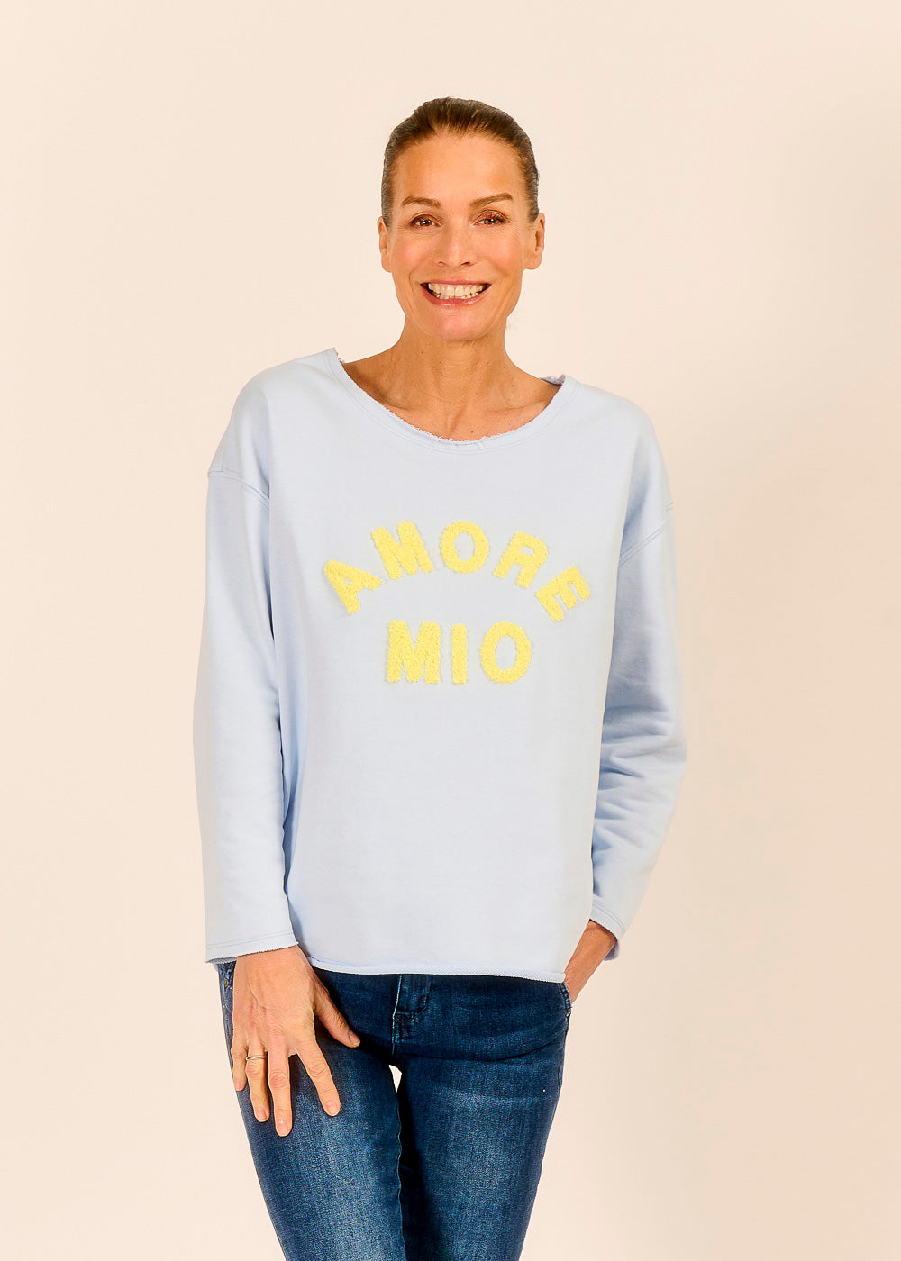 Das lässige Sweatshirt bringt italienische Herzlichkeit direkt in deinen Alltag. Die fröhliche Amore-Mio-Stickerei ist eine Liebeserklärung an das Leben. Der entspannte Schnitt und die weiche Baumwolle sorgen für ein angenehmes Tragegefühl.