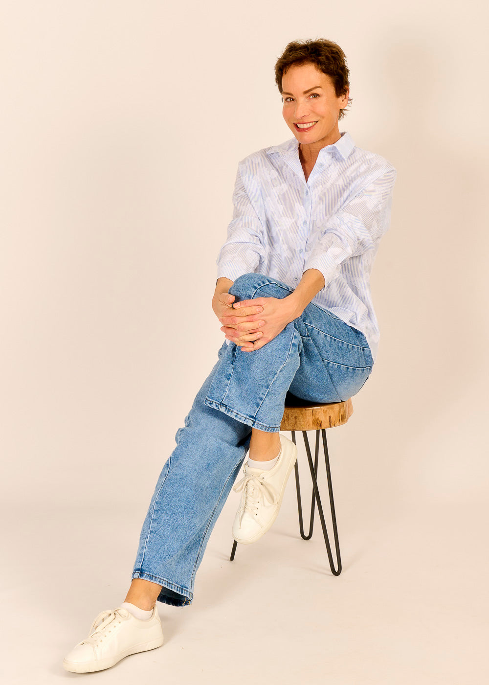 Klassische Streifen treffen auf moderne Raffinesse: Die feine Applikation verleiht der hellblauen Bluse einen besonderen Akzent. Ein stilvolles Lieblingsstück für alle, die klassische Looks mit dem gewissen Extra lieben.